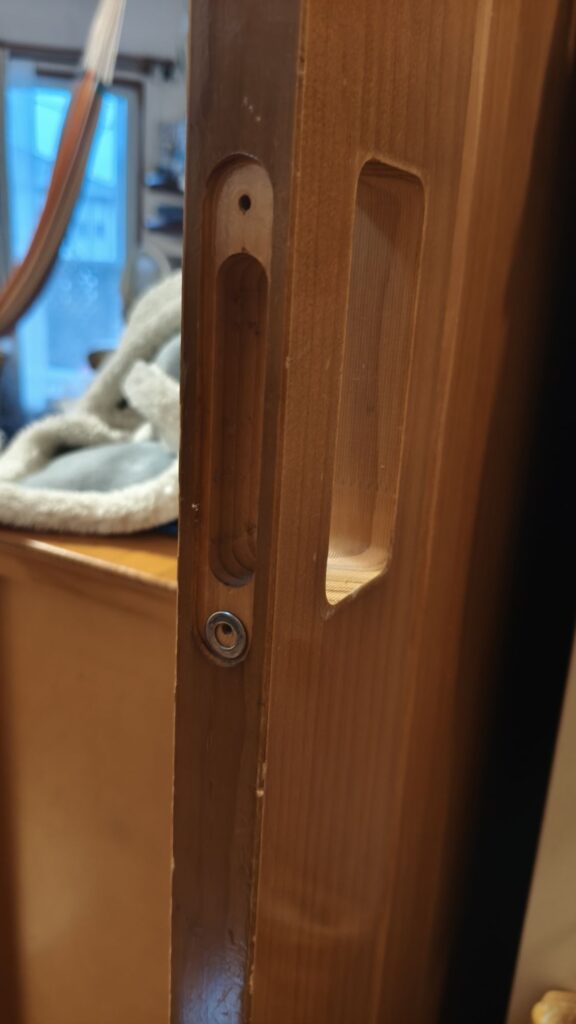 いつもはこの引き戸の取っ手を引くと引けるのですが引けなくなってました。