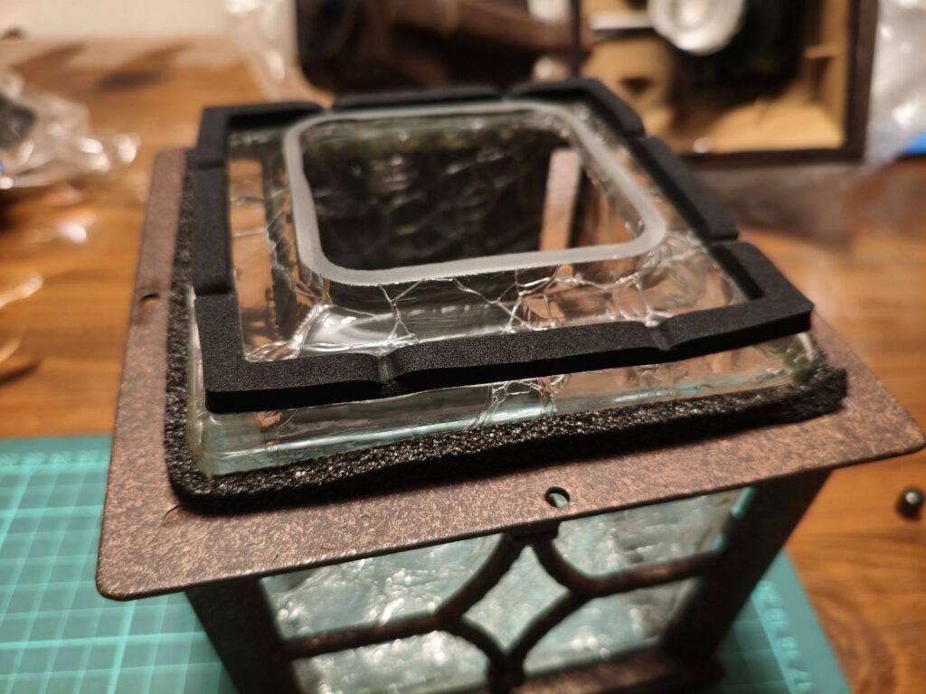 追加したスポンジの隙間が出にくくなるようにシェードを取り付けて取り付け完了です。
