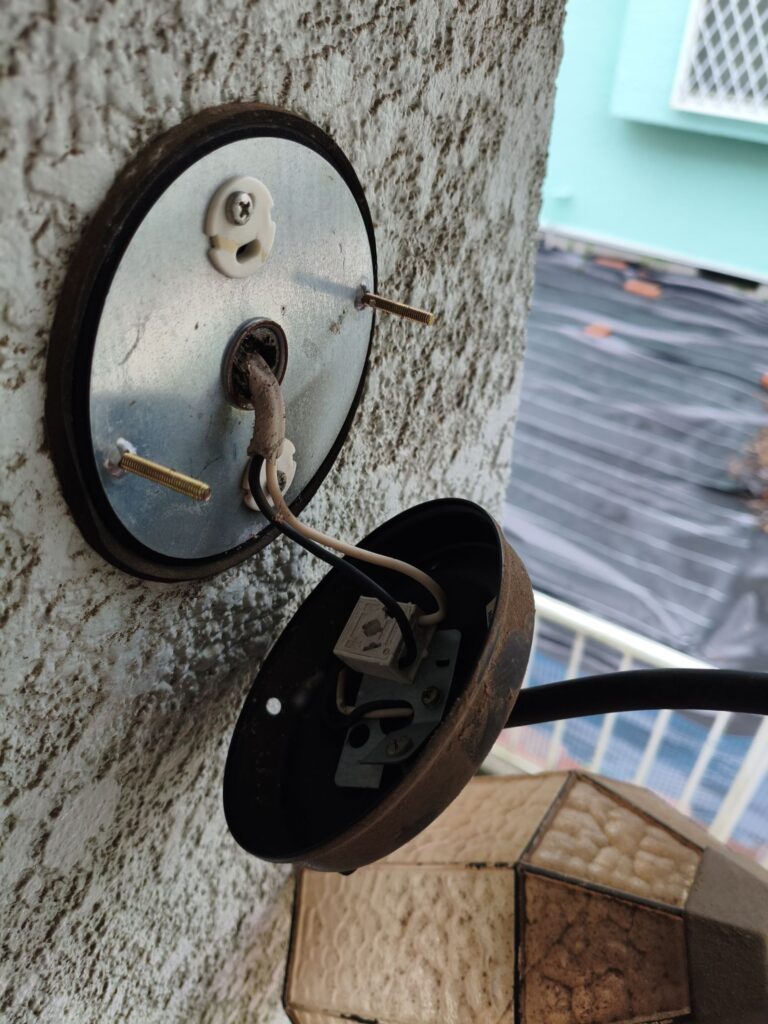 古い玄関灯を外しました。