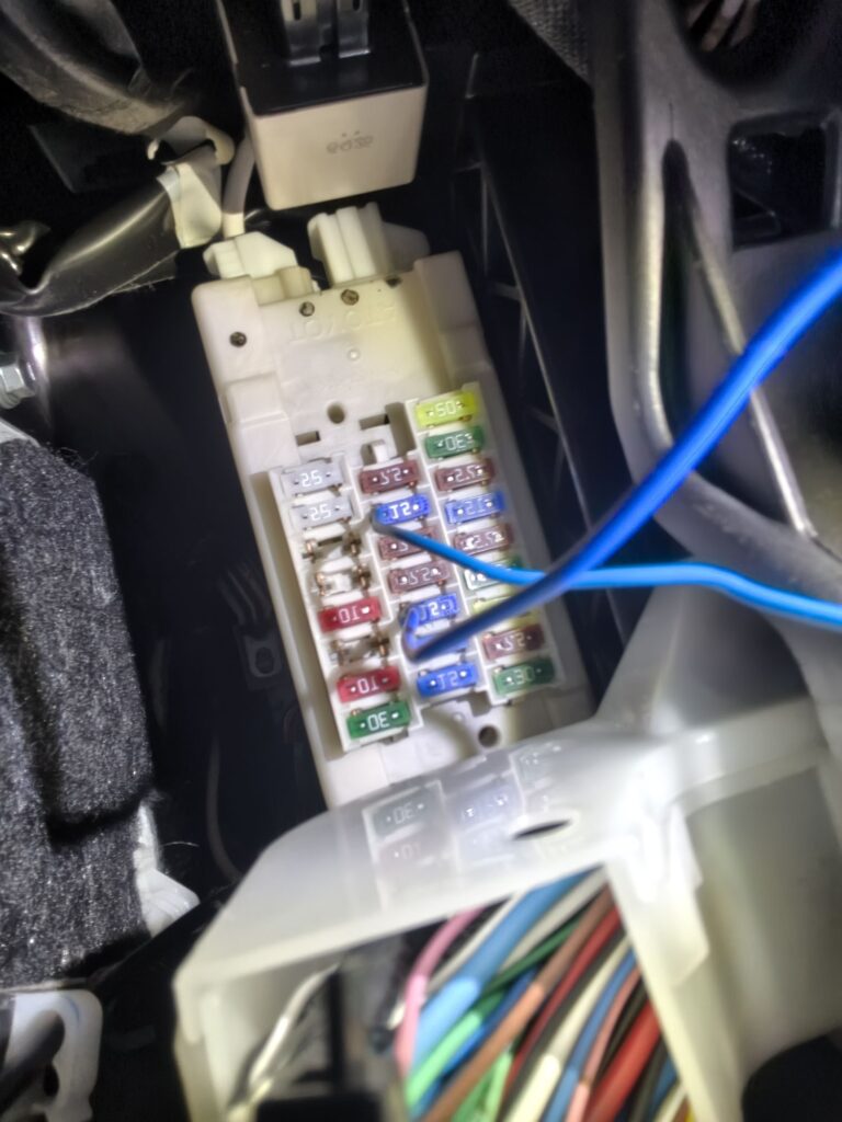 この車は運転席と助手席にそれぞれヒューズボックスがありますが、後々の発展を考えて運転席側のヒューズボックスから電源を取る事にしました。