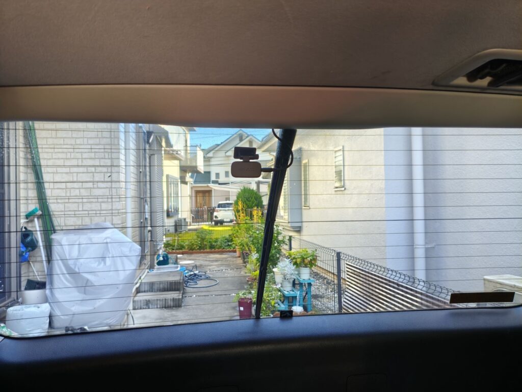 リアカメラもワイパーで拭き取り可能な位置としました。縦の棒はリアワイパーです。