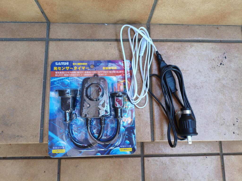 電源からは光センサータイマーでつなぎます。この出力が防水プラグなのですよ。